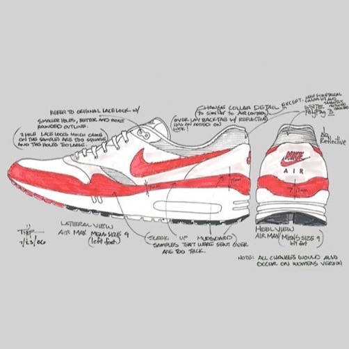 Air Max 1元祖紅白色調的來源也和Tinker Hatfield建